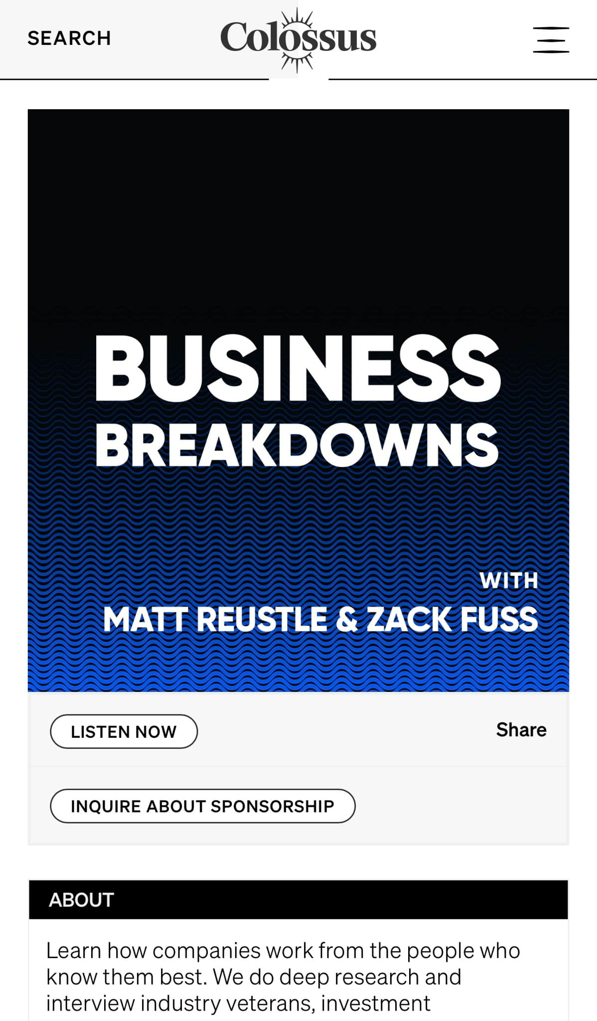 雖然這種機會有些可遇不可求(buy side通常不會主動對外揭露這些資訊),但市面上還是有一些不錯的免費資源:例如Business Breakdowns這款podcast節目,它每一單集聚焦一家公司,邀請一位業界專家(分析師或基金經理人),用45-60分鐘的時間,完整剖析一家公司的投資邏輯(包含回答主持人的提問)。這種做法與我在買方時,跟賣方分析師挑選一兩支股票做深度討論的方法十分類似。目前為止它已經累積了接近200家公司的分析,也因為每集的講者不同,內容的精采程度得看講者功力(但對於初學者來說資訊密度絕對足夠)。