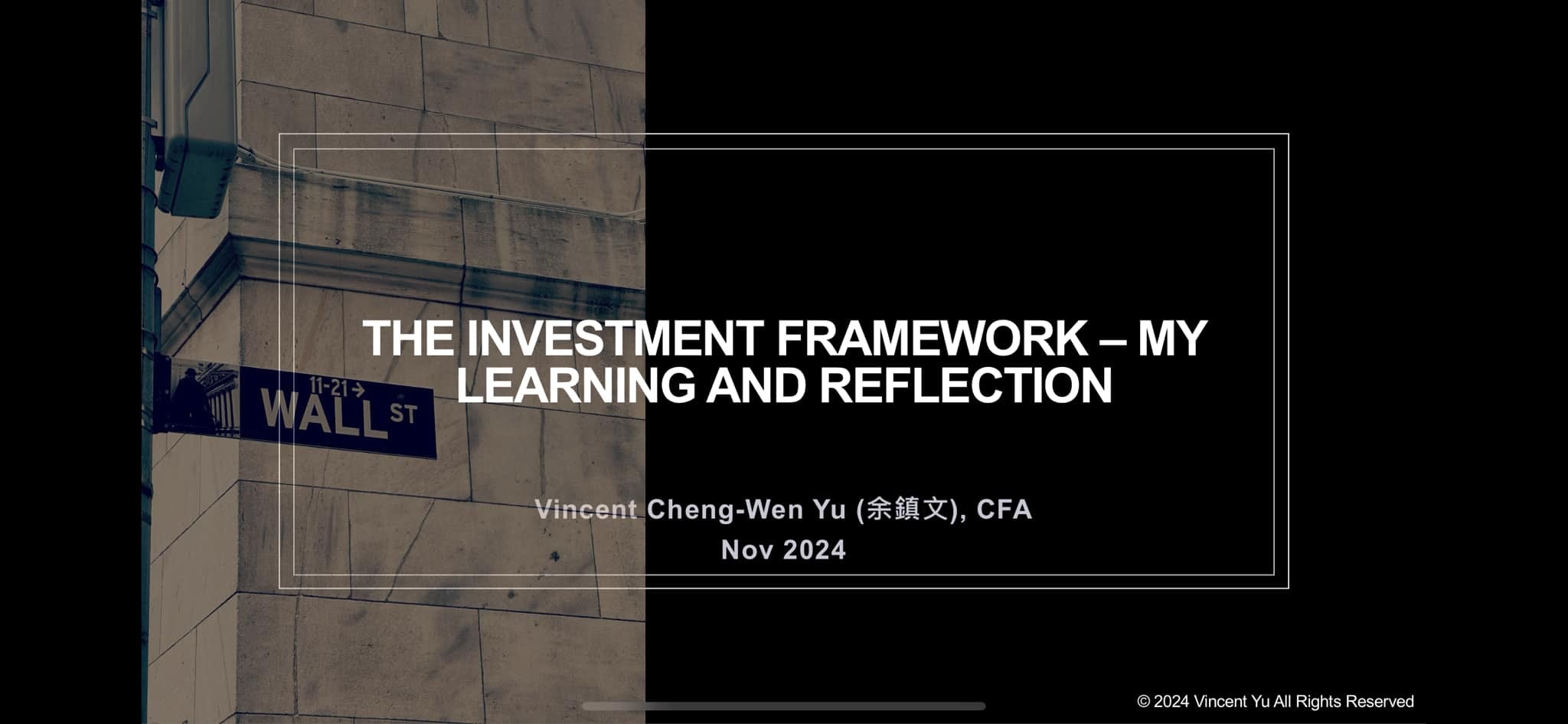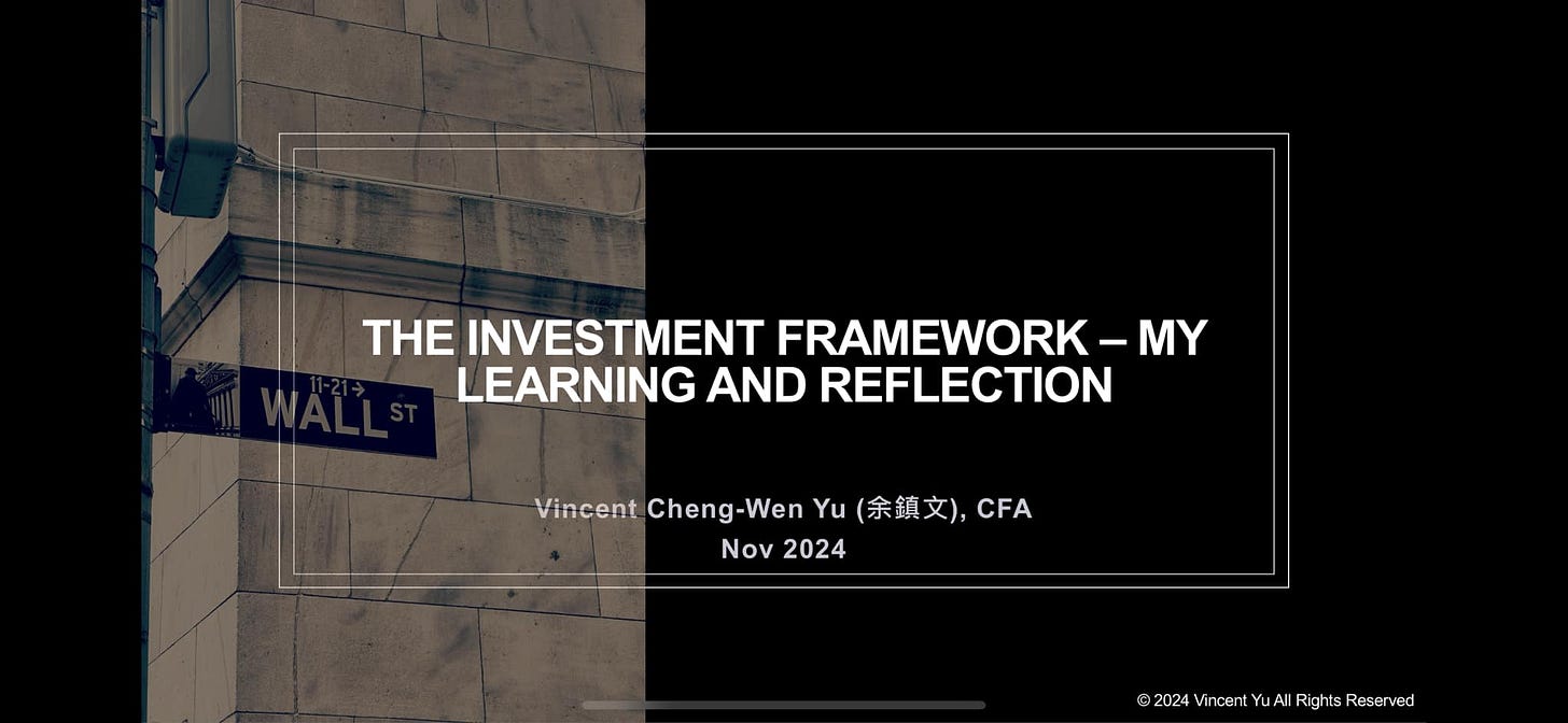這週末是我今年帶的mentorship的第二次聚會,趁這個機會再次整理了我從過去近二十年的學習和建立的投資框架(presentation attached),分享給對這個主題有興趣的朋友,也歡迎提出問題一起討論。